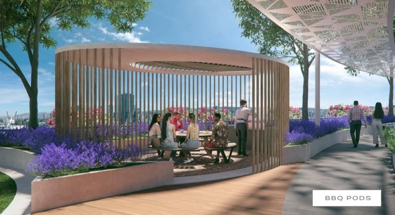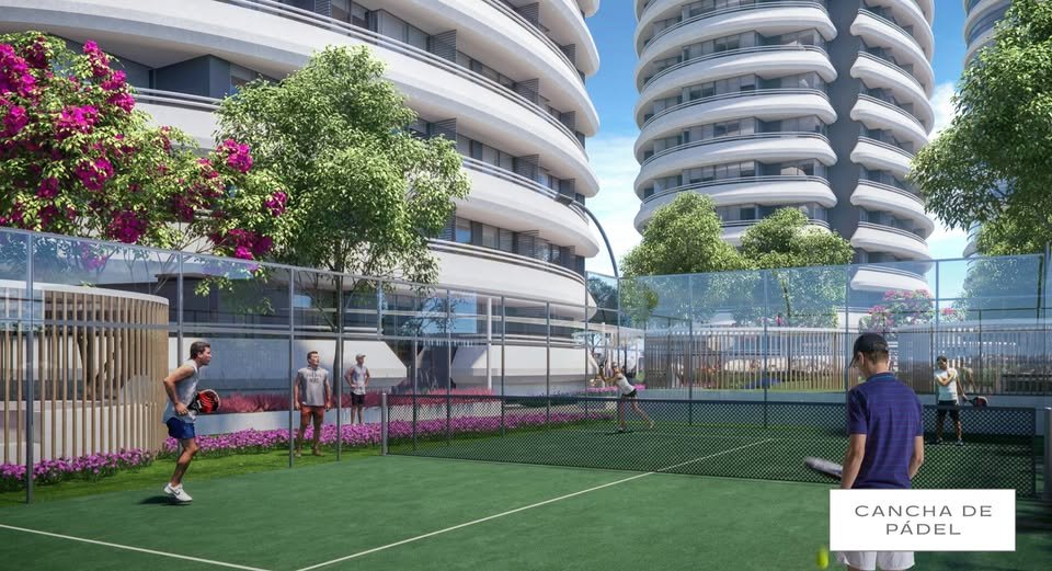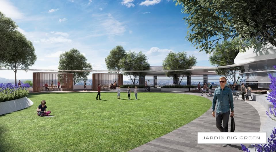 El Cielo Rooftop con fogateros. BBQ Pods. Cancha de Pádel. Playground. Pet Park. Motor Lobby. Horno de Piedra